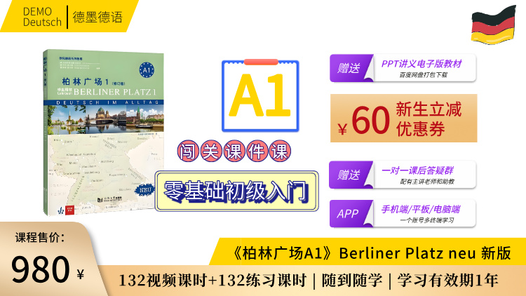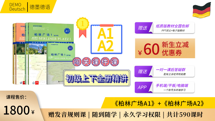《柏林广场A1》260课时德语零基础初级上全册精讲班【闯关课件课】1年学习有效期