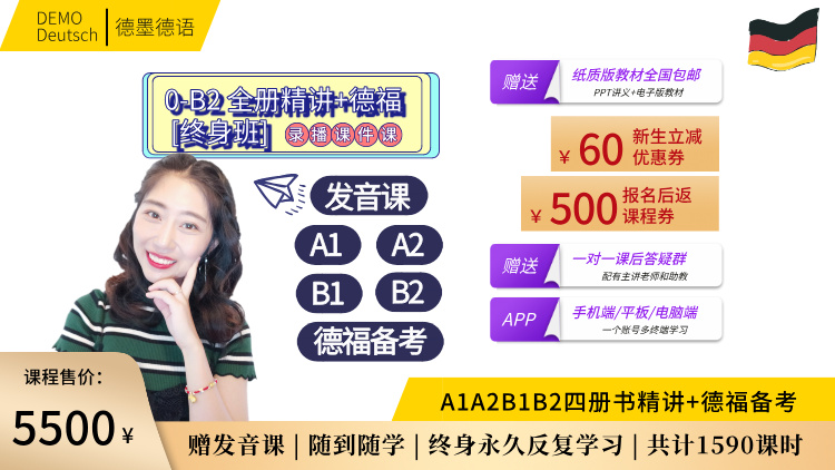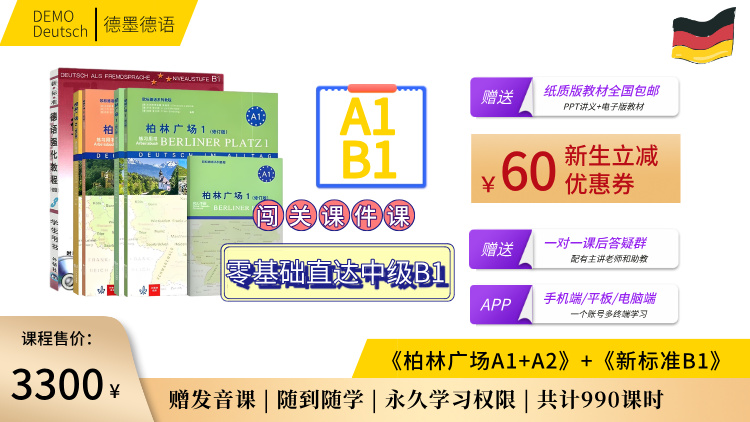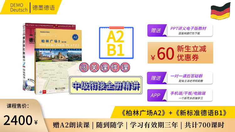 A2-B1德语初级直达中级全册精讲班+赠A2德语听说训练【课件课】三年学习有效期